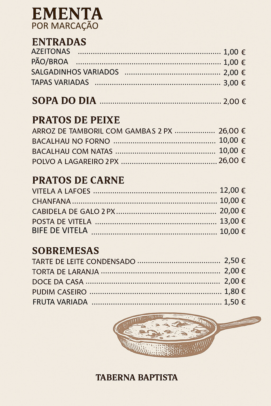A TabernaBaptista não partilha a sua informação para campanhas de marketing com empresas não pertencentes ao grupo nem transfere os seus Dados Pessoais para um país terceiro.