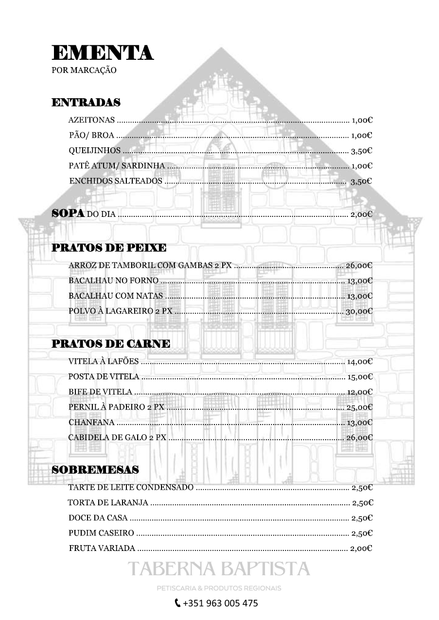 O Responsável pelo Tratamento deste website é a TabernaBaptista e o mesmo pode ser contatado através do endereço postal Av. Da Catraia 16 Vila Pouca 3440-111 Santa Comba Dão, Portugal ou em alternativa pelo +351 963 005 475 ou tabernabaptista@tabernabaptista.com.